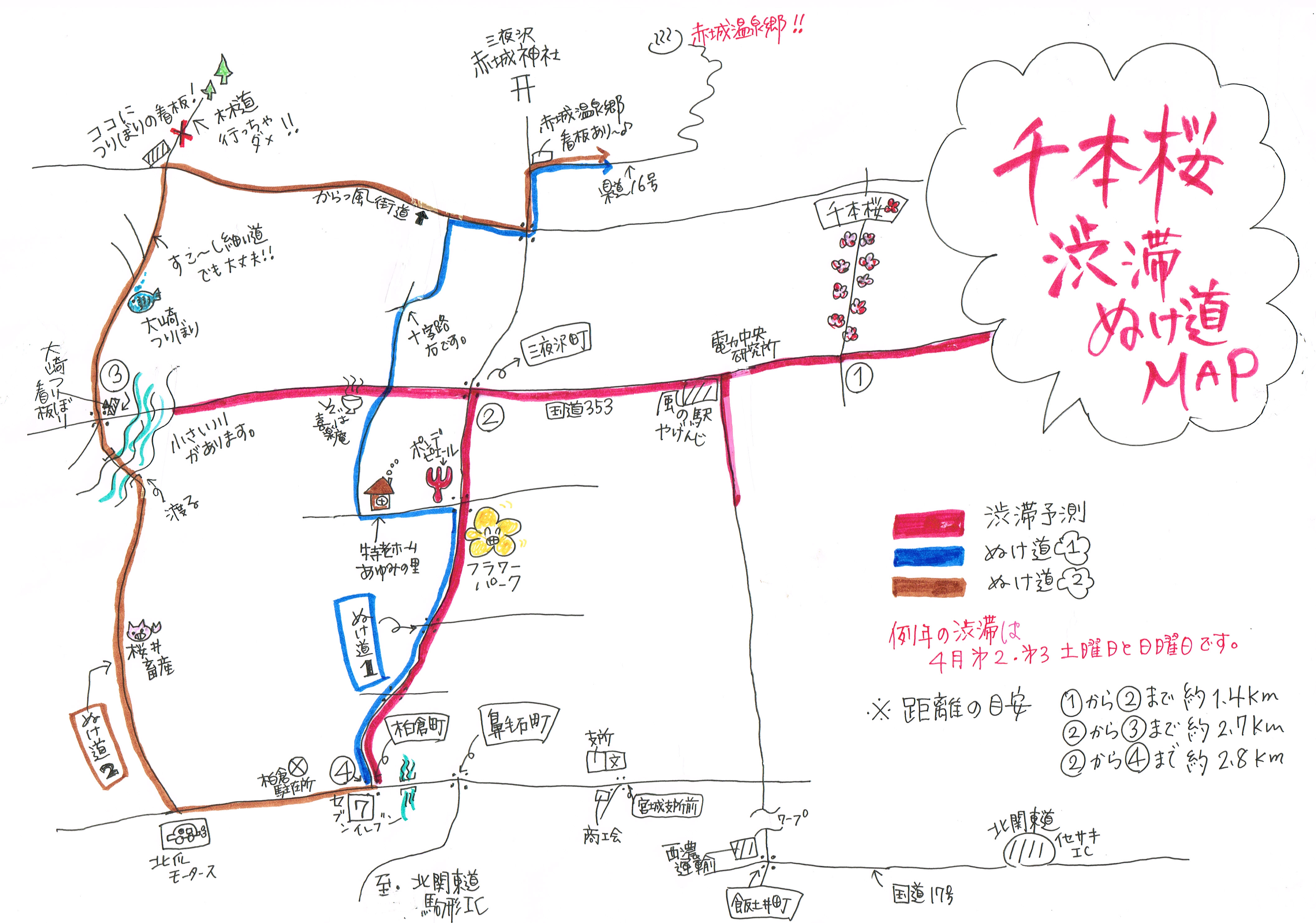 当館にご宿泊のお客様は大渋滞を避けてご来館して頂きたく、渋滞回避マップを